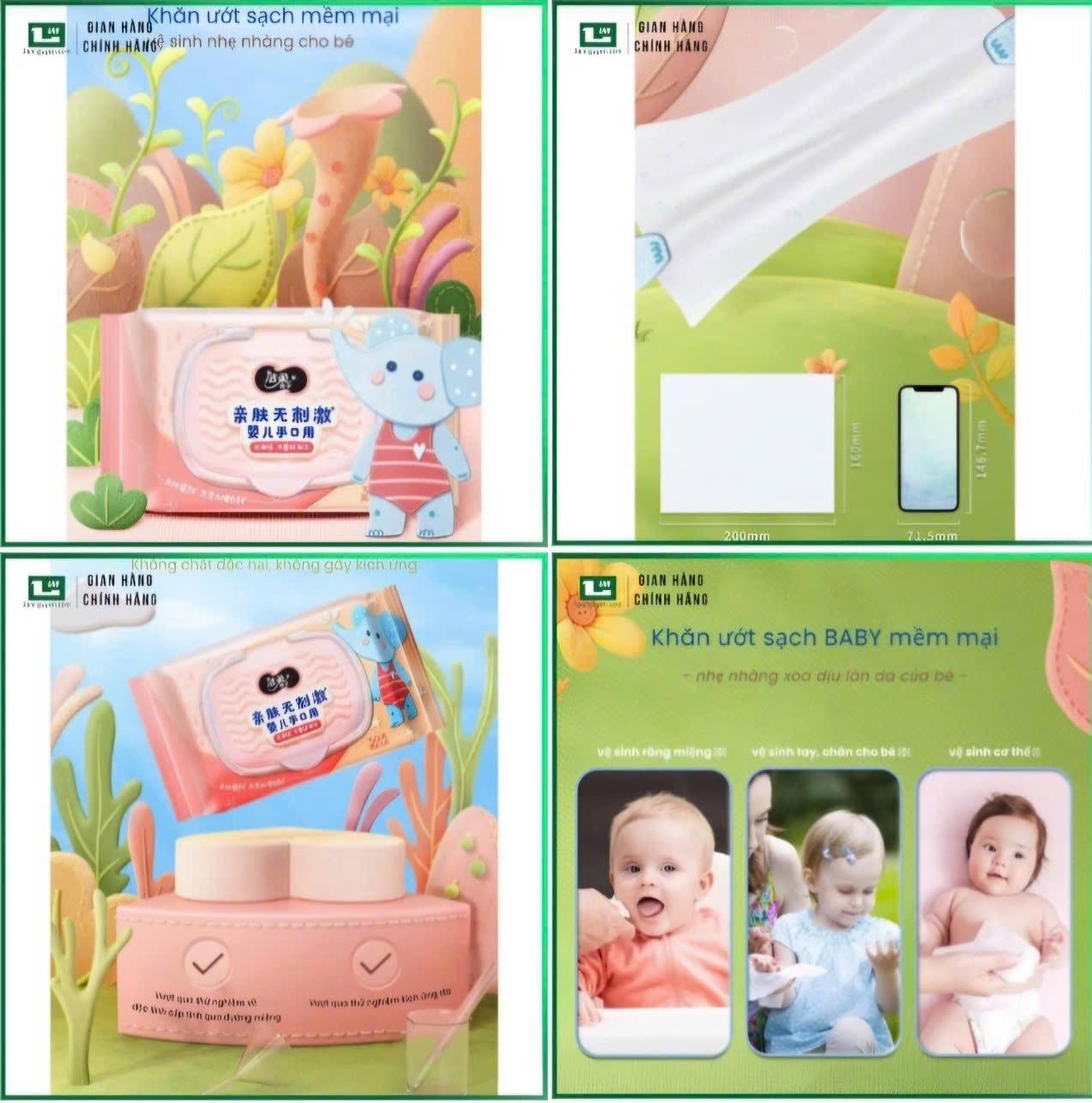 ✔️ Kích thước khăn: 160 x 200mm – vừa tay, lau sạch nhanh chóng.