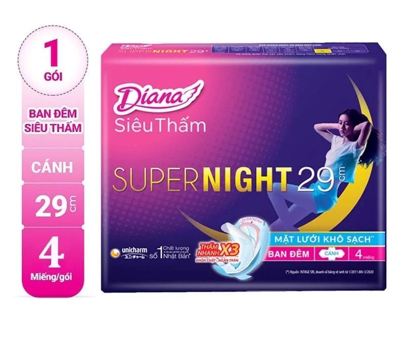 Băng vệ sinh diana ban đêm cánh 29cm - 4 miếng là sự lựa chọn của nhiều bạn gái trong những ngày đèn đỏ, đặc biệt là những ngày “dâu” đầu của chu kỳ. Giai đoạn đầu lượng kinh nguyệt ra nhiều nên băng vệ sinh diana có thể đáp ứng mọi tiêu chí như chống tràn, thấm hút tốt, kháng khuẩn cho nàng luôn thoải mái, tự tin và có một giấc ngủ ngon.