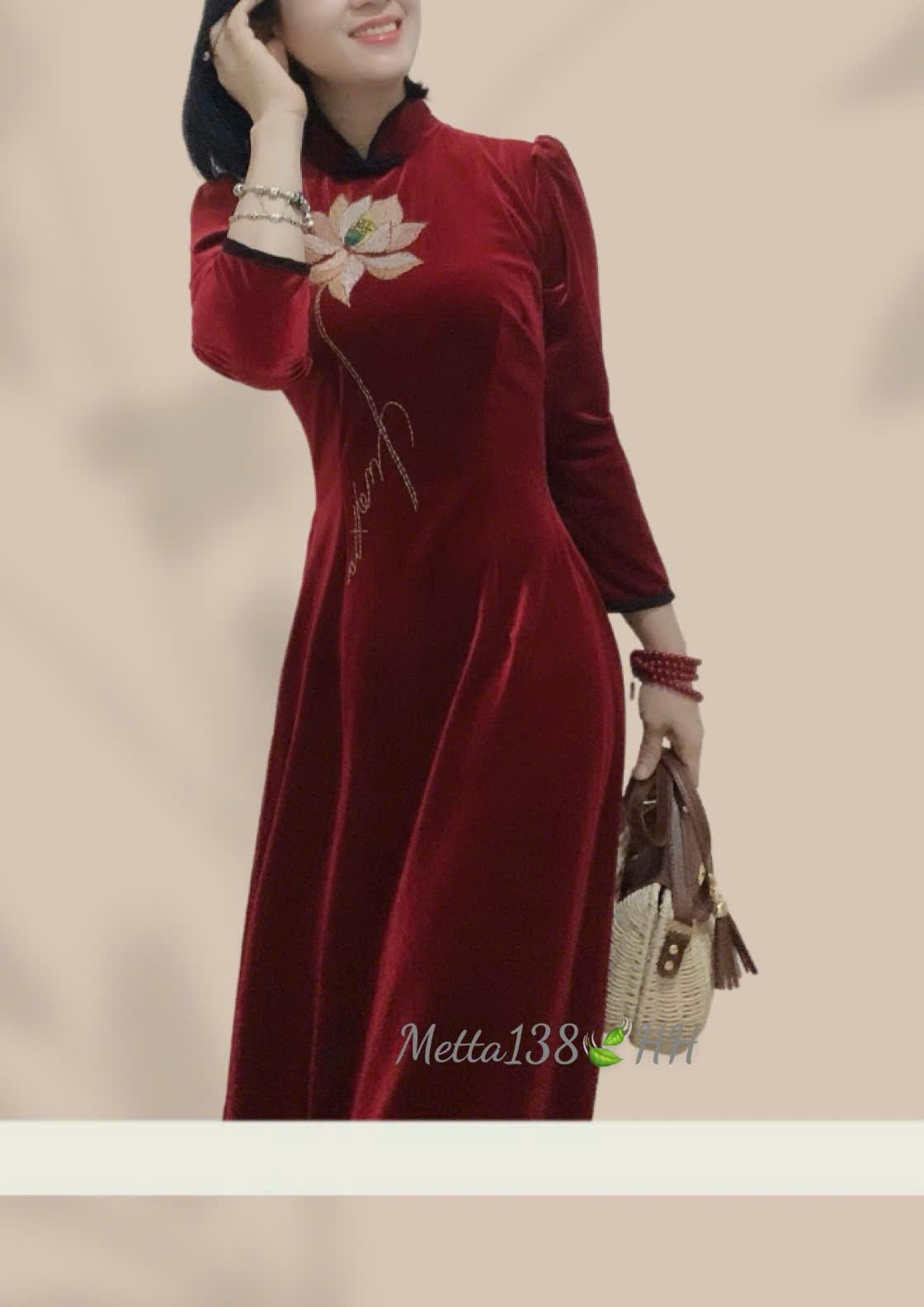 Bộ Trang Phục Áo Dài, Chất Liệu Nhung The, Thanh Lịch