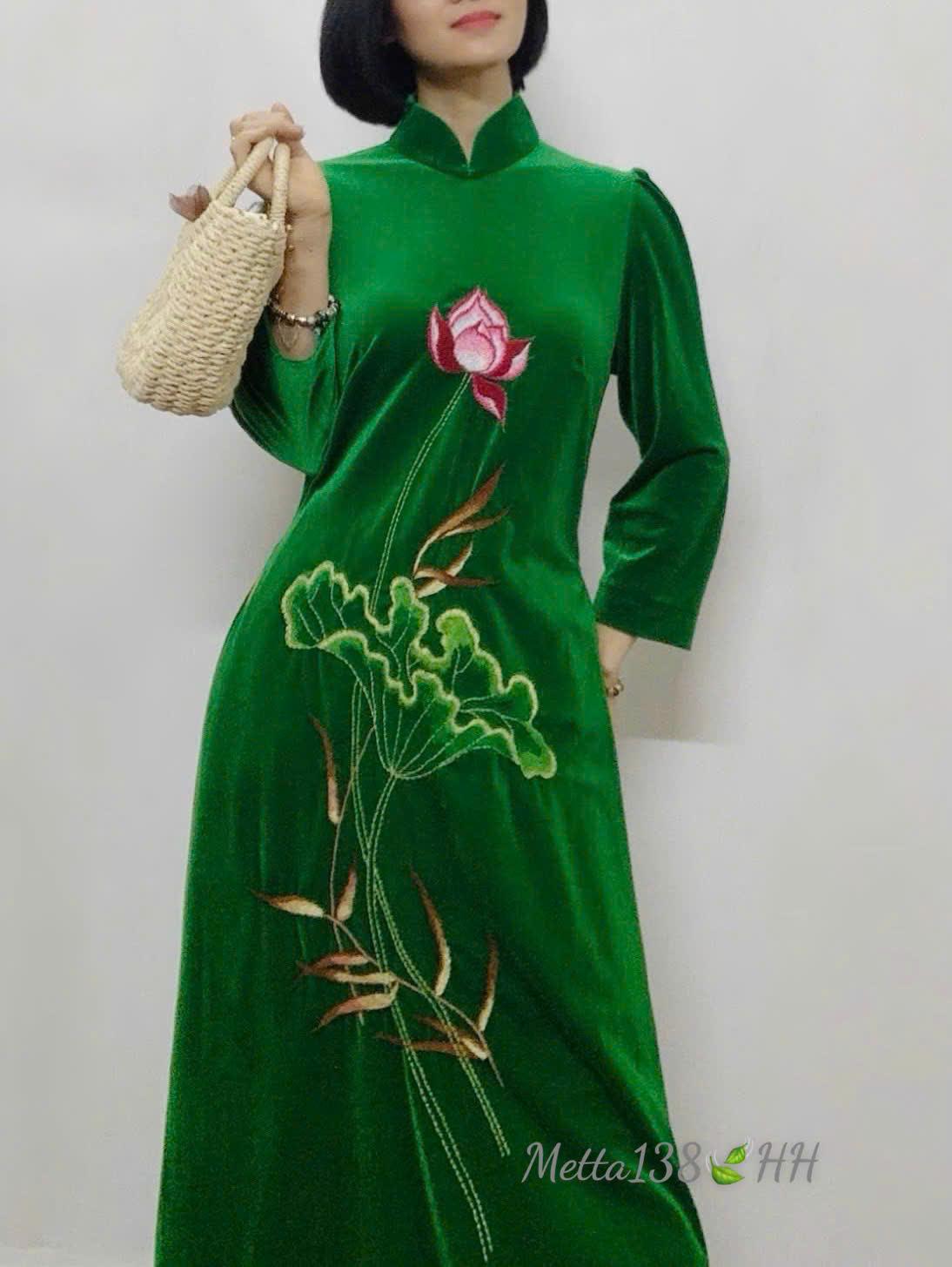 Bộ Trang Phục Áo Dài, Chất Liệu Nhung The, Thanh Lịch