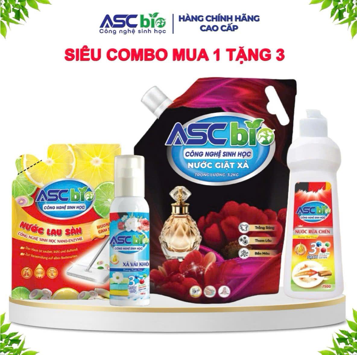 Combo túi mua 1 tặng 3 (Gồm 4 sản phẩm: 1 túi nước giặt 3,2kg; 1 nước rửa chén 750ml; 1 xả vải khô 100ml & 1 túi lau sàn 1L)