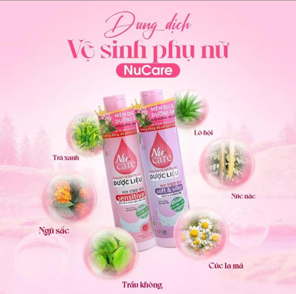 Dung dịch vệ sinh phụ nữ Nu+Care Sensitive được chiết xuất từ 6 dược liệu đông y quý: Trà xanh, Ngũ sắc, Trầu không, Lô hội, Núc nác, Cúc La Mã. Sản phẩm giúp làm sạch dịu nhẹ – khử mùi hôi – ngăn ngừa viêm nhiễm, nấm ngứa – cân bằng hệ vi sinh vùng kín.