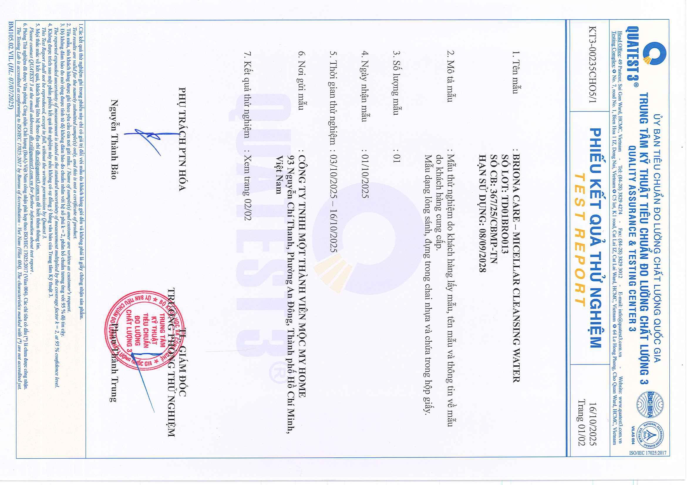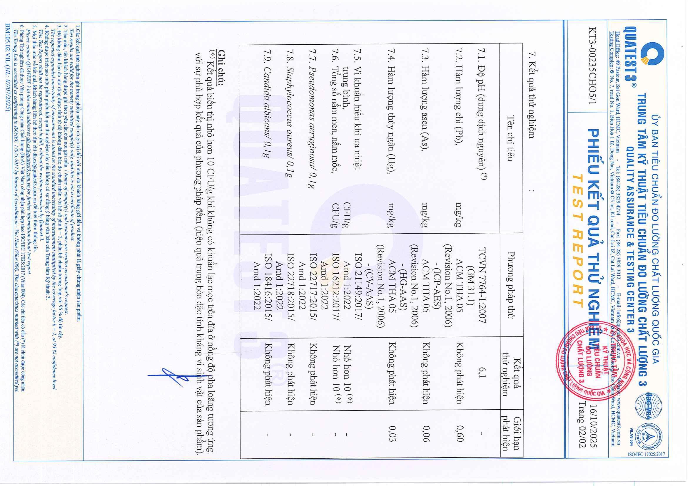• Chỉ tiêu kích ứng da: Không đáng kể – an toàn cho da nhạy cảm.