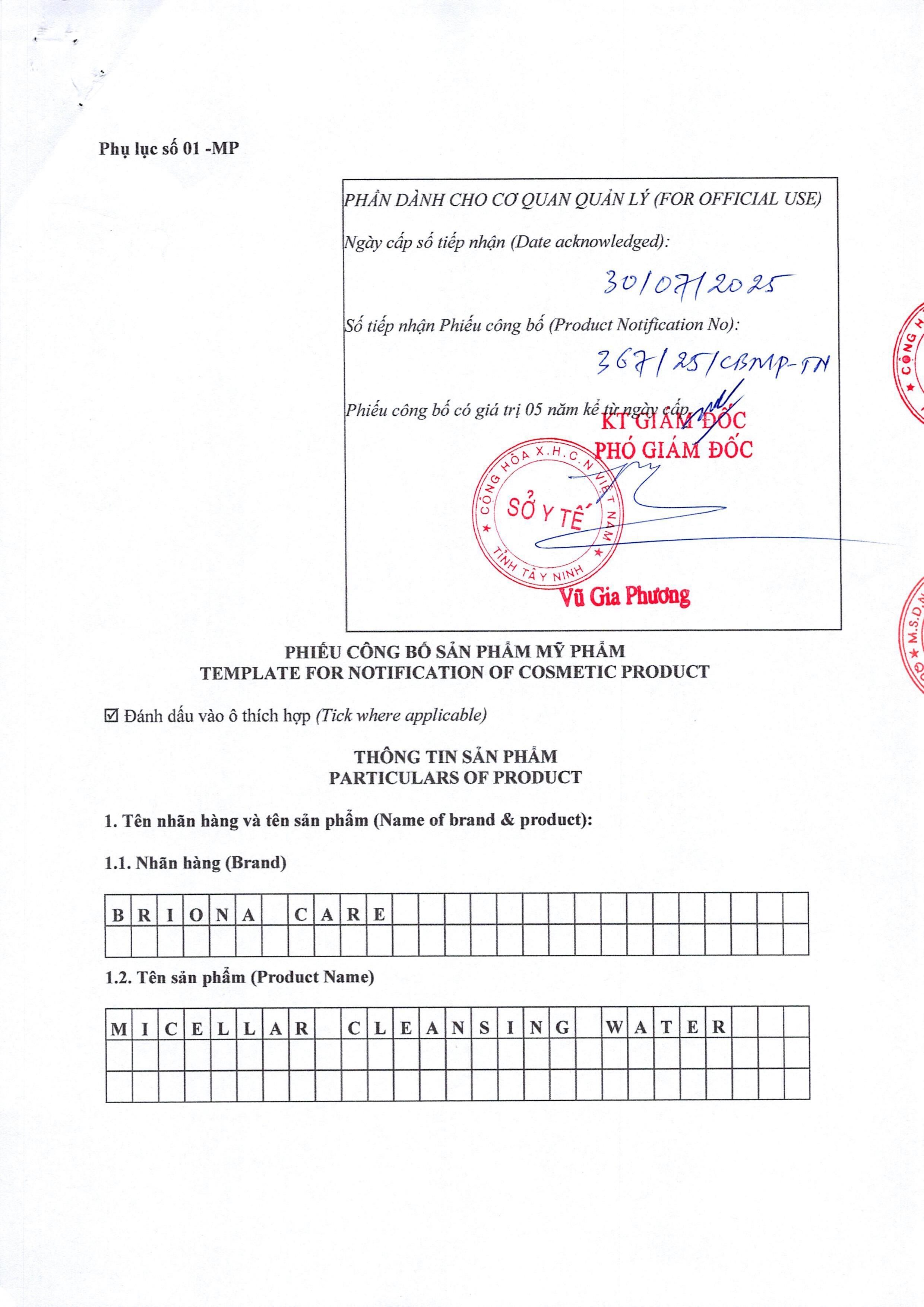 • Thương hiệu: Briona Care – thuộc Công Ty TNHH MTV Mộc My Home
