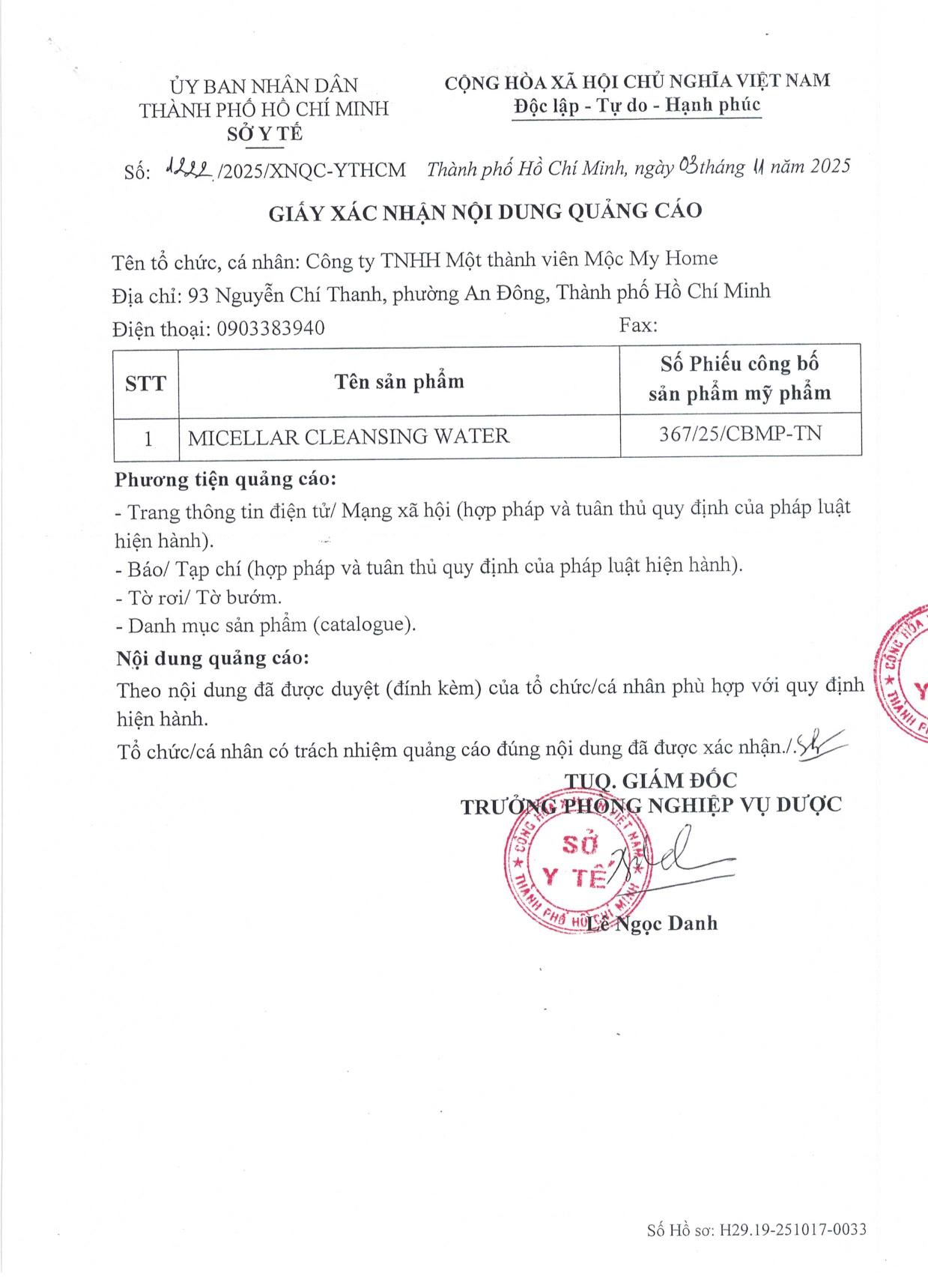 • Số công bố: In trên bao bì