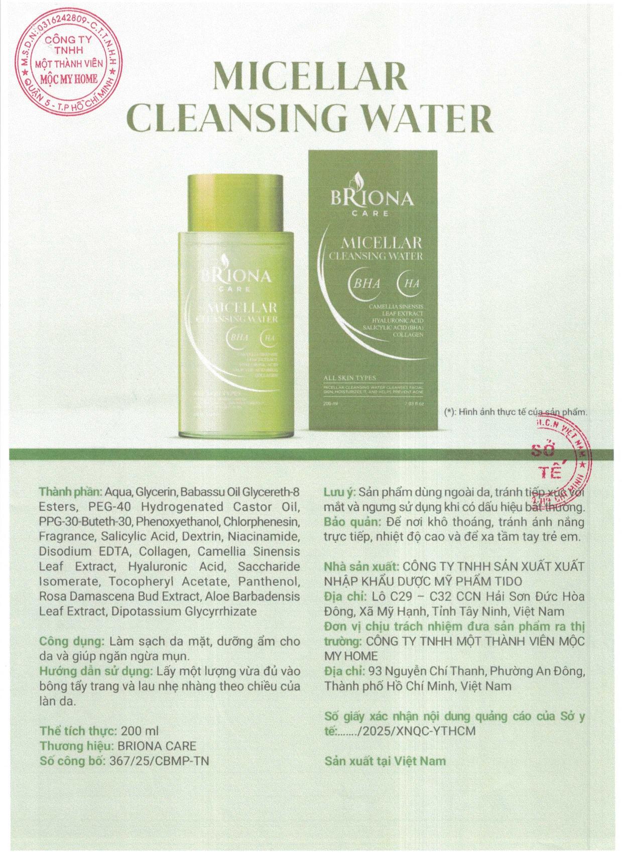 • Tên sản phẩm: Nước Tẩy Trang Cho Da Dầu Mụn Briona Care