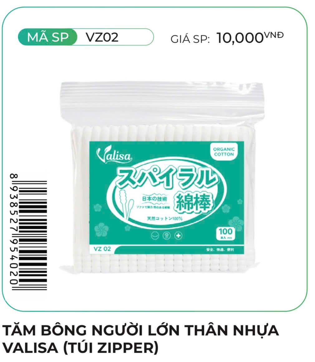 Tăm bông người lớn thân nhựa valisa 100 que (túi zipper)