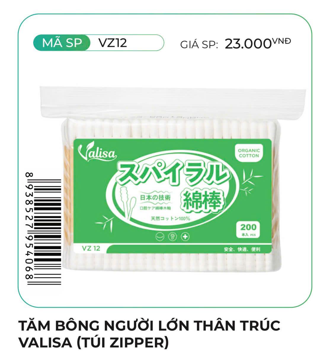 Tăm bông người lớn thân trúc valisa 200 que (túi zipper)