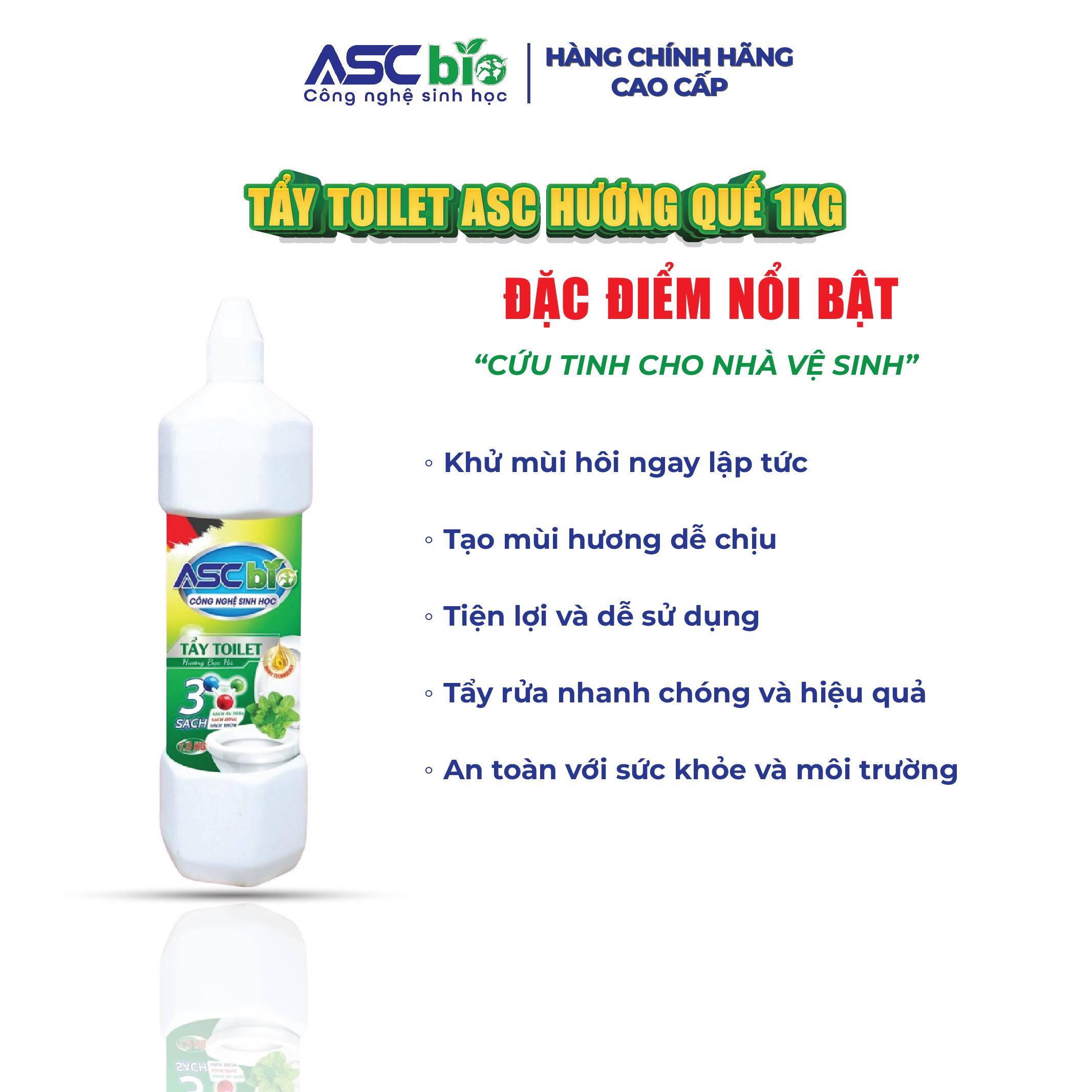Tẩy toilet sinh học ASC BIO là một sản phẩm thân thiện với môi trường, được thiết kế để làm sạch và khử mùi nhà vệ sinh một cách hiệu quả. Sản phẩm này chứa các thành phần sinh học giúp phân hủy chất thải và ngăn ngừa sự phát triển của vi khuẩn gây mùi, với cơ chế làm sạch bằng cách bóc tách vết bẩn bằng enzyme và công nghệ nano, thành phần từ gốc thực vật an toàn lành tính tự nhiên, Điều này không chỉ giúp giữ cho nhà vệ sinh luôn sạch sẽ mà còn an toàn cho sức khoẻ, bảo vệ thiết bị, bảo vệ môi trường bằng cách giảm thiểu việc sử dụng hóa chất độc hại.